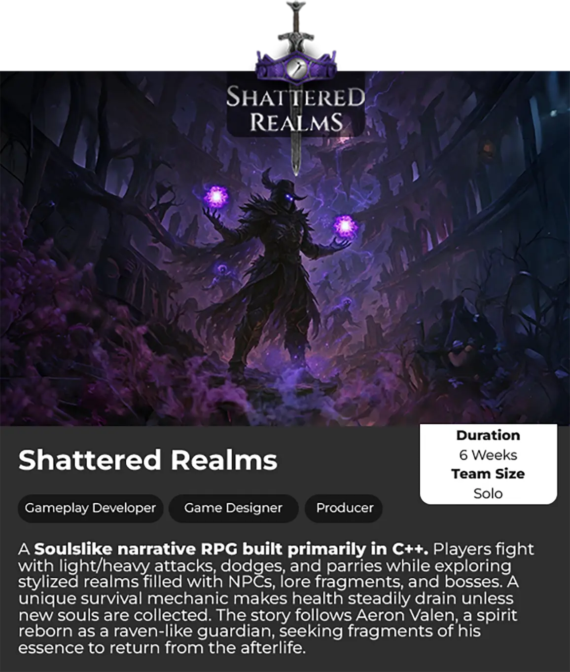 C++ Programming : Implemented core systems, gameplay features, and optimizations with clean & modular code.