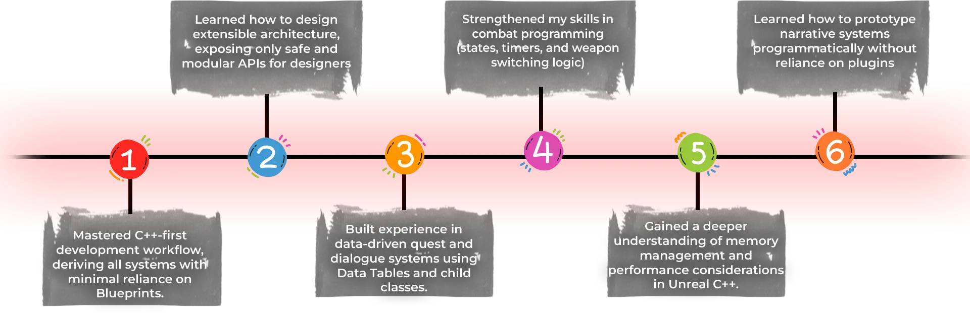 Shattered Realms is a stylized narrative RPG built entirely in C++ as a technical challenge to push system architecture and gameplay programming. The project follows Aeron Valen, a man who dies in a tragic accident and awakens as a raven-like spirit in the limbo between life and death. Designed as a playable RPG demo, the game combines narrative-driven exploration, combat and moral choice with modular systems implemented from scratch in C++.